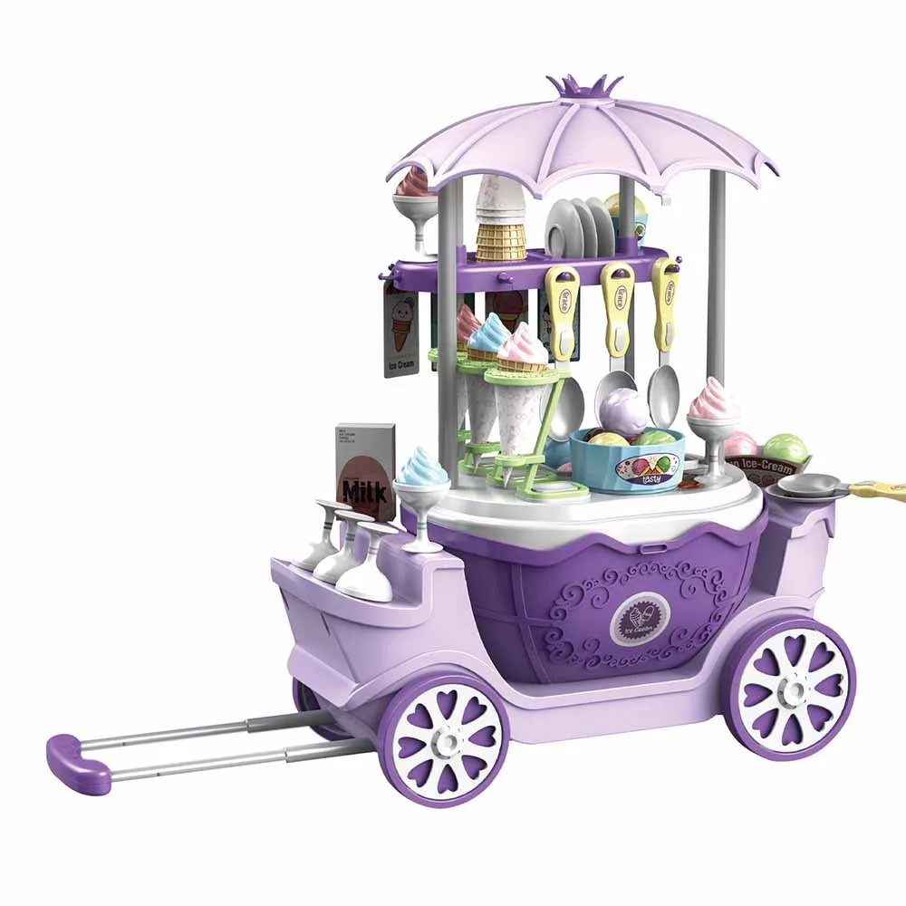 Wózek do lodów 4 w 1 to praktyczne i przenośne rozwiązanie. Można go łatwo złożyć i przekształcić w walizkę, a konstrukcja na kółkach zapewnia dzieciom łatwość poruszania się. Kosz, który można zdjąć z wózka, może być używany osobno i pomieści wszystkie niezbędne akcesoria do zabawy.