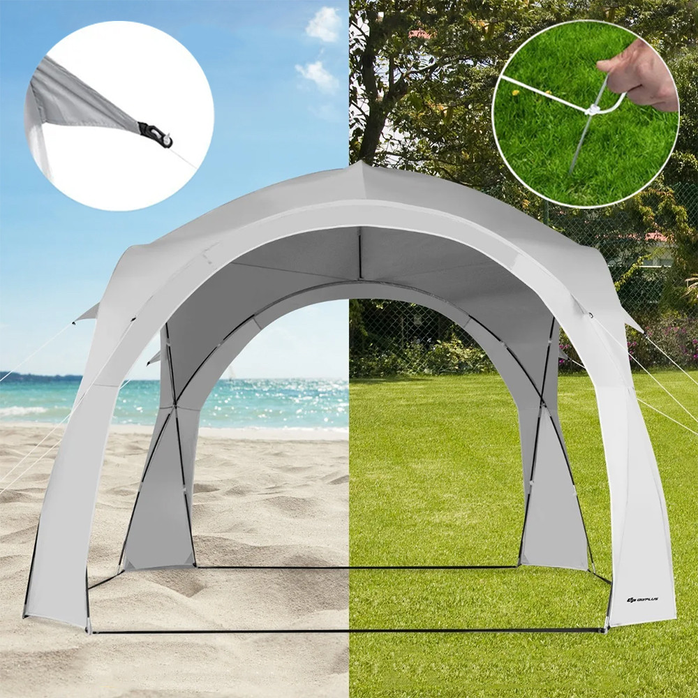 Kształt zakrzywionego dachu i solidny biały kolor tworzą elegancki efekt, który doskonale pasuje do różnych plenerowych scenerii — czy to na plaży, w parku, czy w ogrodzie.