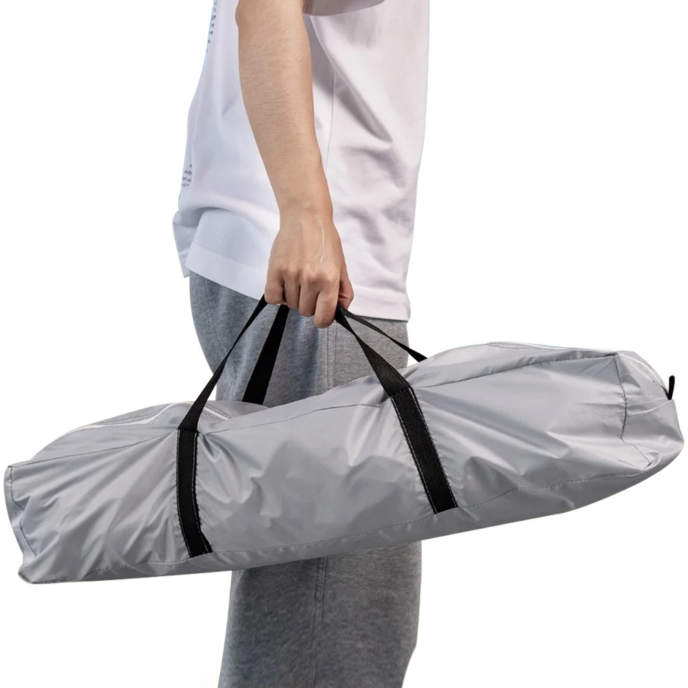 Wzmocnione słupy z włókna szklanego, system linek i stake'i zapewniają stabilność. Namiot można złożyć w kilka minut i łatwo transportować w torbie.