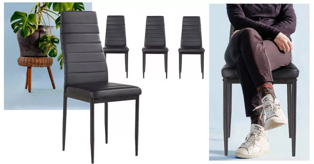 Minimalistyczny, czarny kolor i proste, ale eleganckie linie sprawiają, że zestaw doskonale pasuje do różnych wnętrz. Niezależnie od tego, czy szukasz krzeseł do kuchni, jadalni, salonu czy biura, te meble będą praktycznym i stylowym dodatkiem.