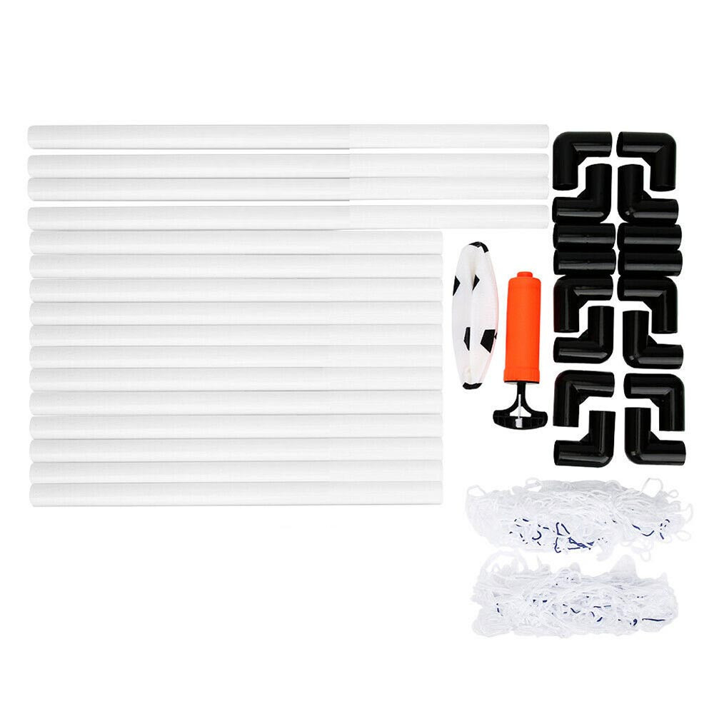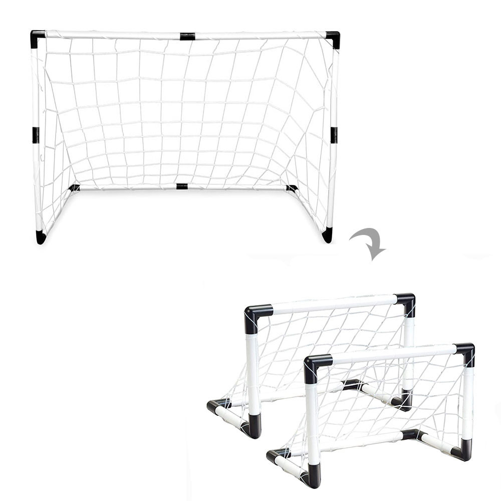 Zestaw bramek do piłki nożnej 2 w 1 oferuje więcej niż zwykłą bramkę do piłki nożnej. Po złożeniu możemy sami wybrać ile bramek potrzebujemy do gry, a jakiego rozmiaru. Użyj go jako 1 dużej bramki do treningu lub gry indywidualnej lub jako 2 mniejszych bramek do większych meczów. W zestawie znajduje się również siatka, 1 piłka i pompka. Jest łatwy w przenoszeniu.