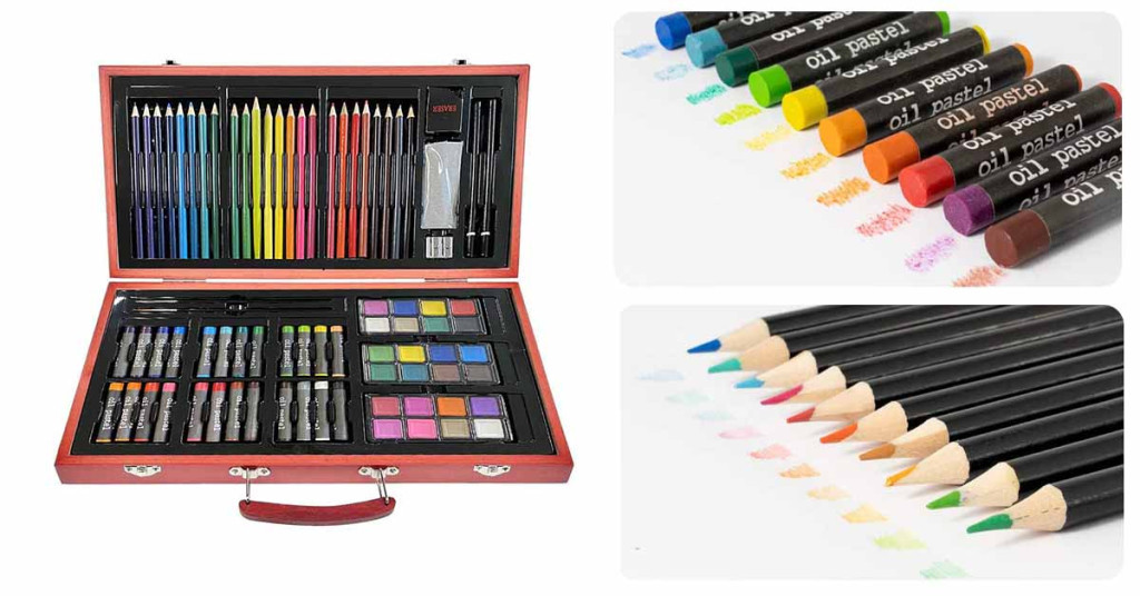 Ten zestaw zawiera wszystkie podstawowe narzędzia, których potrzebuje młody lub początkujący artysta. 24 kolorowe kredki i 24 kolory farb akwarelowych oferują szeroką gamę intensywnych barw, a pastele olejne o jedwabistej fakturze pozwalają uzyskać wyjątkowe efekty artystyczne.