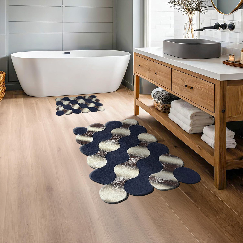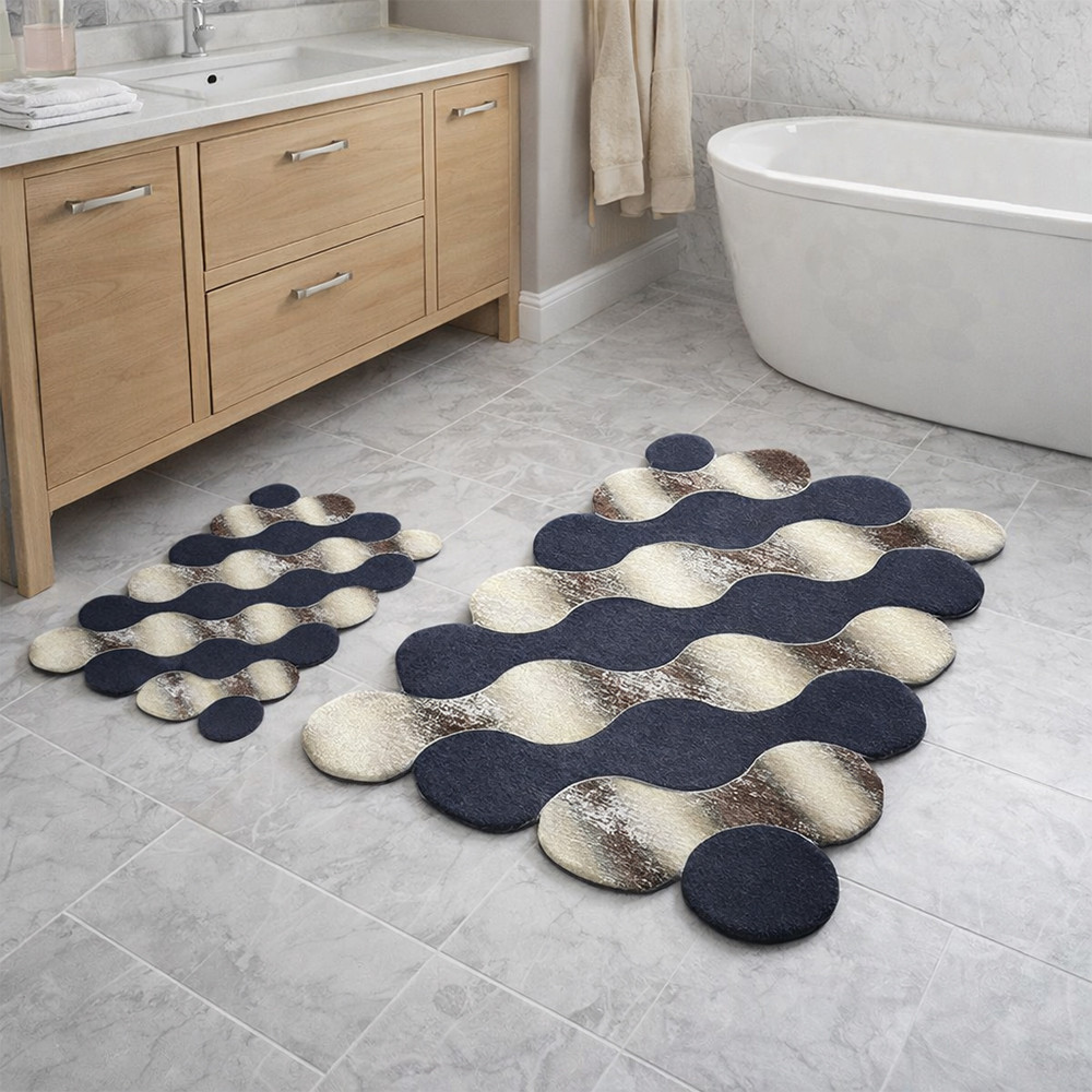 Powierzchnia w wzór kamieni tworzy unikalną, organiczną atmosferę w Twojej łazience, jednocześnie zapewniając przyjemne uczucie pod stopami. Z wysokością runa wynoszącą 10 mm, oferuje grube, komfortowe wsparcie, zamieniając każdy krok po prysznicu lub wannie w prawdziwie relaksujące doświadczenie.
