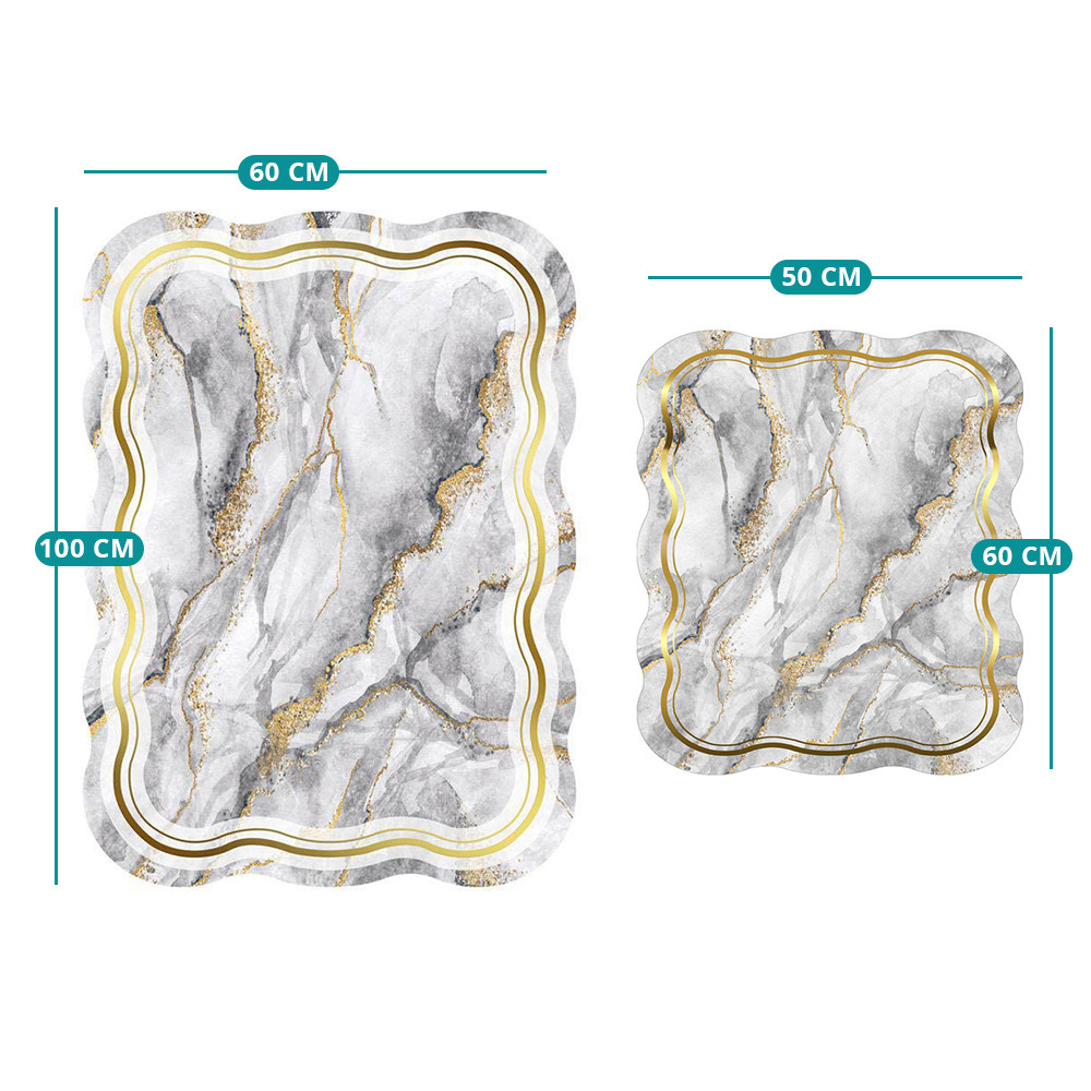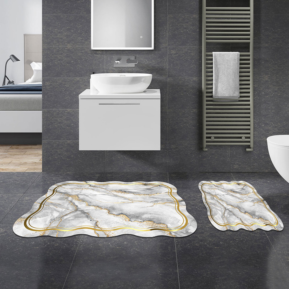 Zestaw dywaników łazienkowych z motywem marmuru nadaje każdej łazience elegancki wygląd i przyjemny komfort. Antypoślizgowa, antybakteryjna konstrukcja zapewnia bezpieczne i higieniczne użytkowanie, a miękka powierzchnia o wysokości 10 mm gwarantuje wygodę na co dzień.