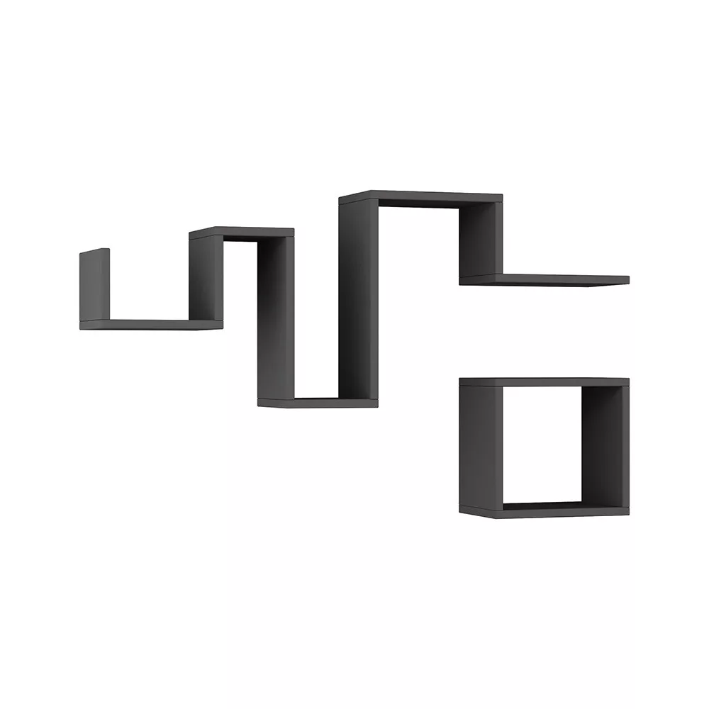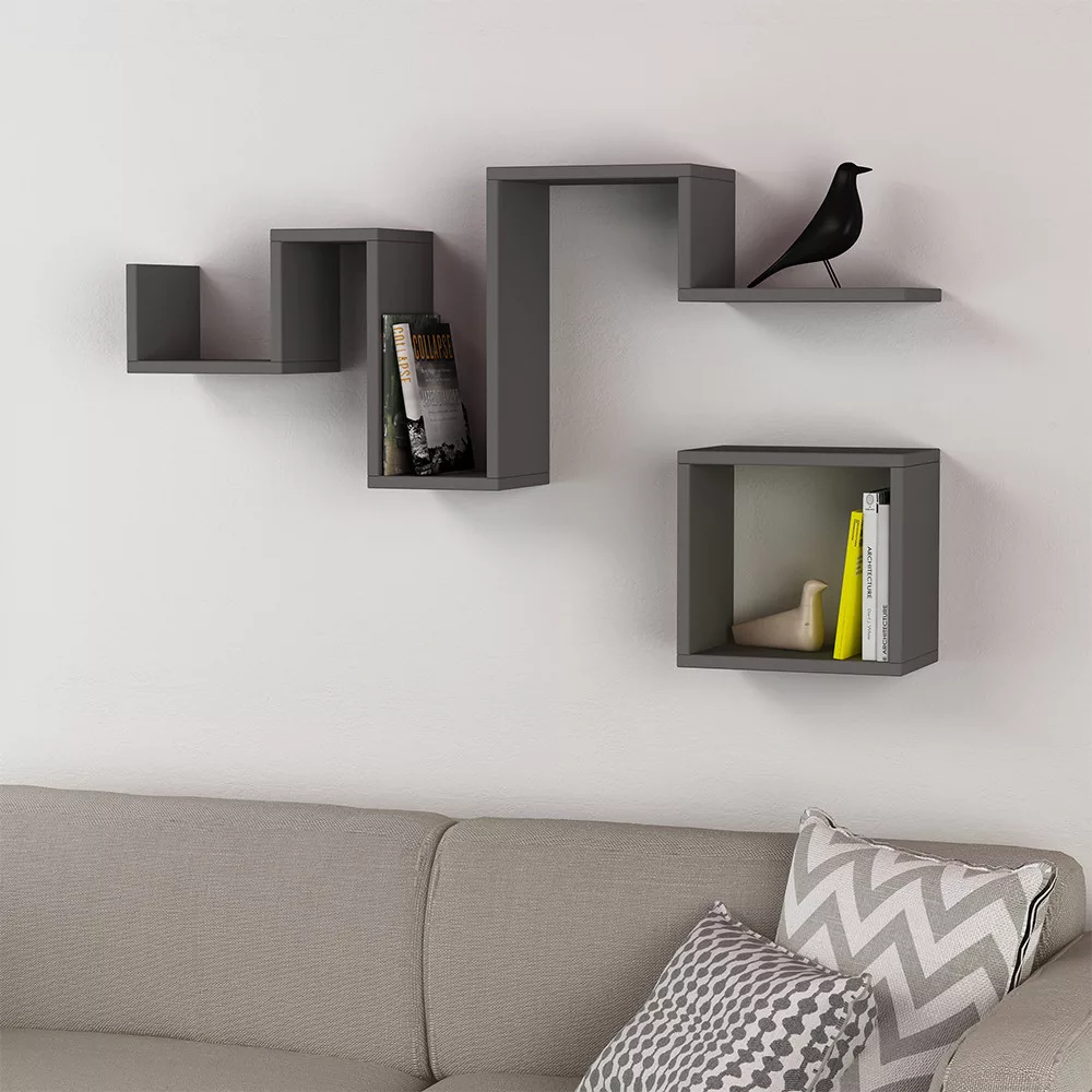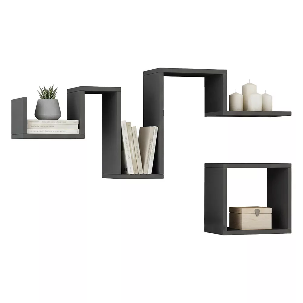 Dzięki dwóm półkom w różnych rozmiarach w kolorze antracytowym możesz stworzyć unikalną kompozycję na swojej ścianie. Ich nowoczesny, geometryczny design dodaje charakteru przestrzeni, jednocześnie zapewniając praktyczne powierzchnie do przechowywania.