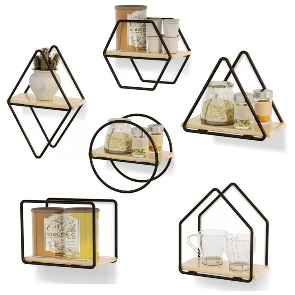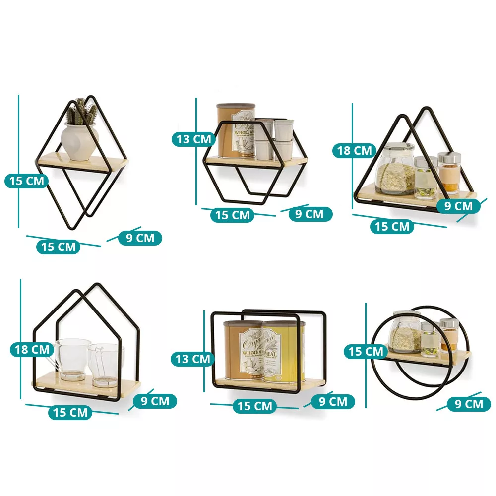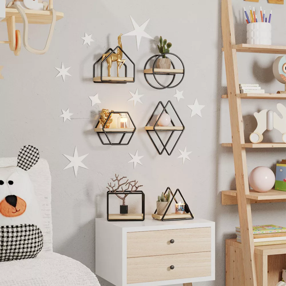 Dzięki różnym geometrycznym kształtom zestawu 6-częściowych półek ściennych możesz stworzyć uderzającą i zabawną kompozycję na swojej ścianie. Możesz je ustawić razem lub osobno, co pozwala na pełne dostosowanie wyglądu.