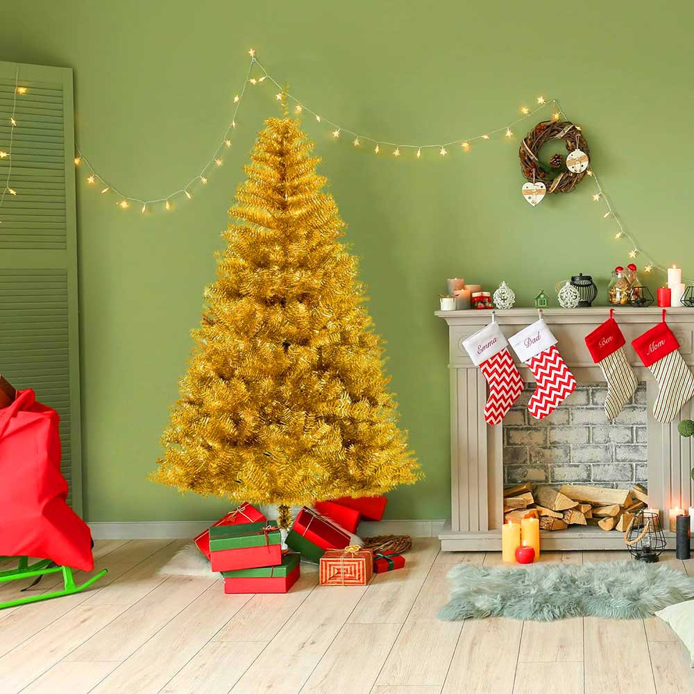 Udekoruj swój dom wyjątkową złotą choinką! Jej elegancki wygląd wnosi do wnętrza ciepło i blask. Jest trwała, nie gubi igieł i łatwa do złożenia. Dostępna w różnych rozmiarach, zapewnia luksusową dekorację świąteczną na długie lata. Ciesz się świętami bez kompromisów!