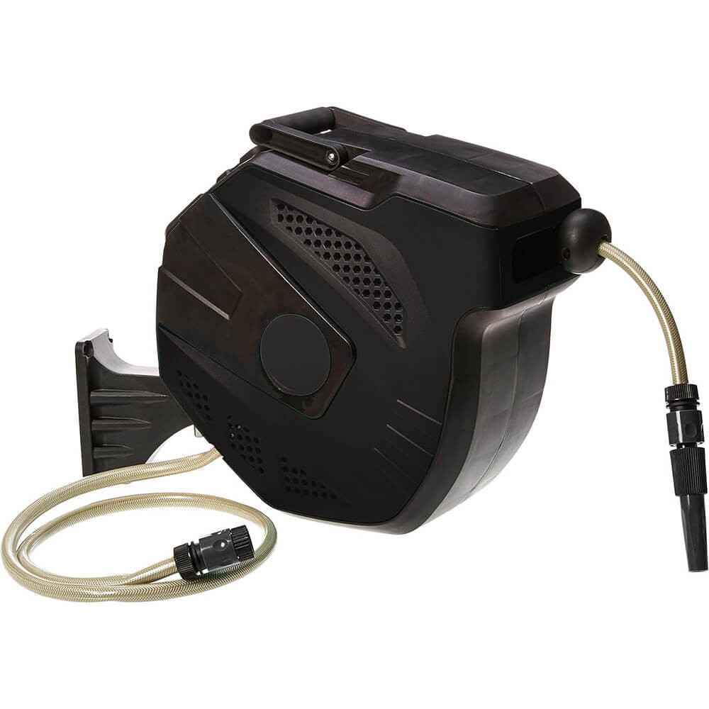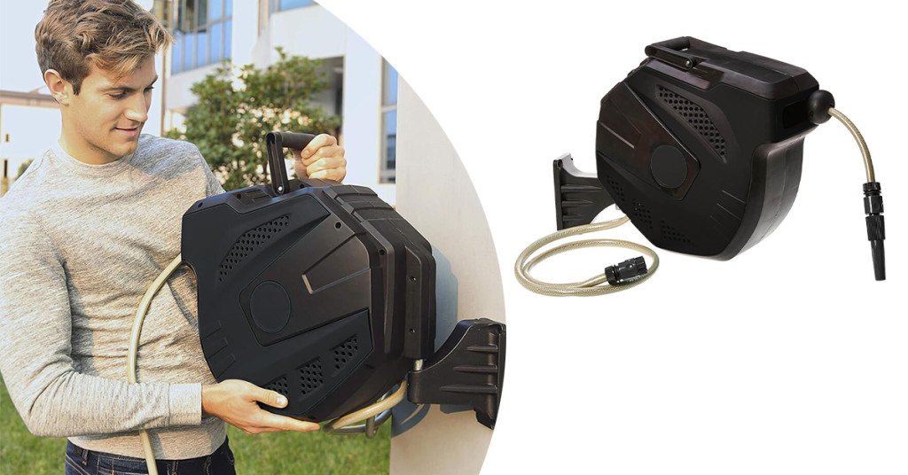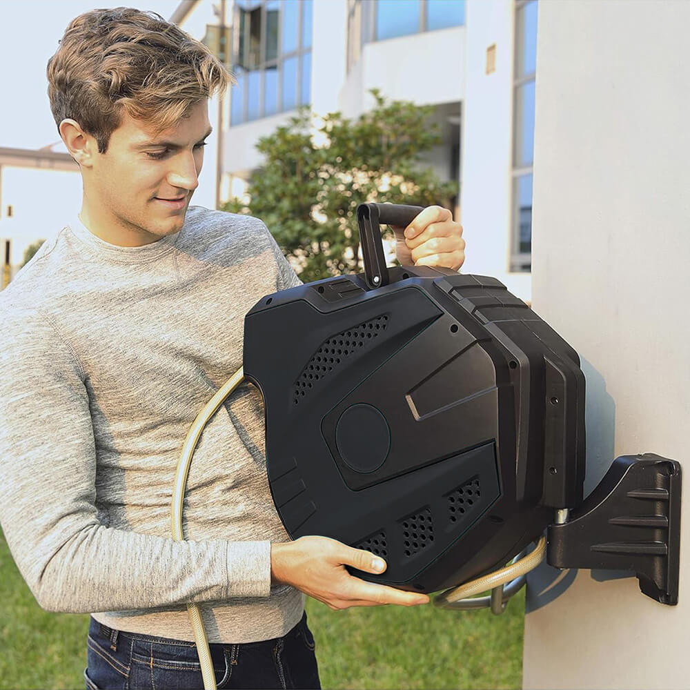 Wbudowany mechanizm automatycznego zwijania ułatwia przechowywanie węża ogrodowego. System blokady pozwala na zablokowanie węża na żądanej długości, a lekkie pociągnięcie uwalnia blokadę, umożliwiając samoczynne zwinięcie węża. Dzięki temu unikasz jego załamywania i plątania.