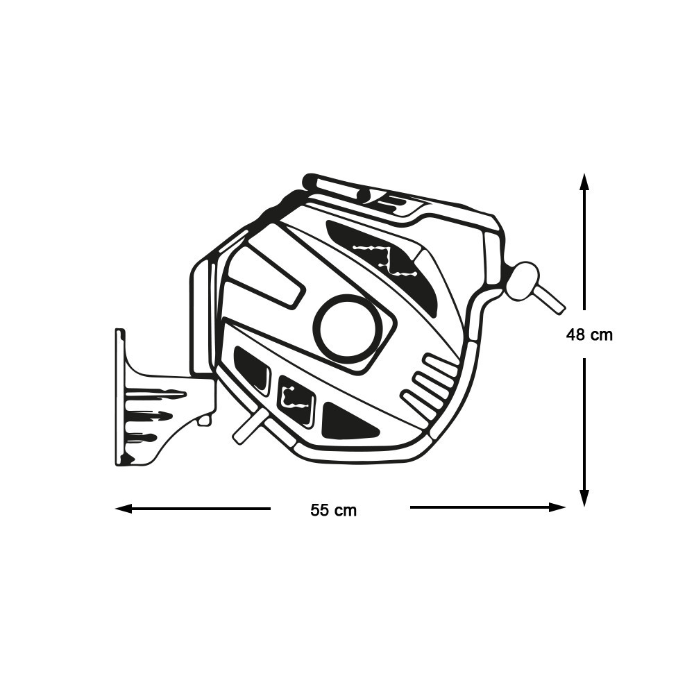 Naścienna konstrukcja zestawu bębna na wąż umożliwia utrzymanie porządku w ogrodzie lub na tarasie. Bęben umieszczony 11 cm od ściany zapewnia wygodne użytkowanie, nie ograniczając swobody ruchu. Wąż o długości 30+2 m sprawdzi się zarówno podczas nawadniania większych terenów, jak i mycia samochodów.